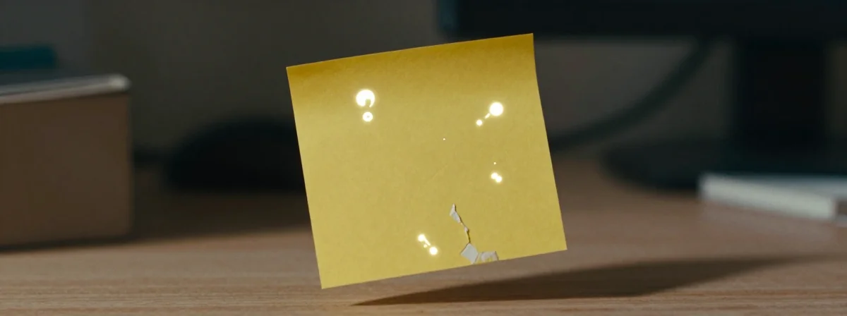 La evidencia sugiere que el post-it no simplemente cayó, sino que se desprendió activamente de su libreta y flotó. Lo que podemos verificar es que las condiciones del ambiente descartan corrientes de aire o vibraciones externas. Esto permanece sin confirmar pero plantea interrogantes sobre las fuerzas involucradas.